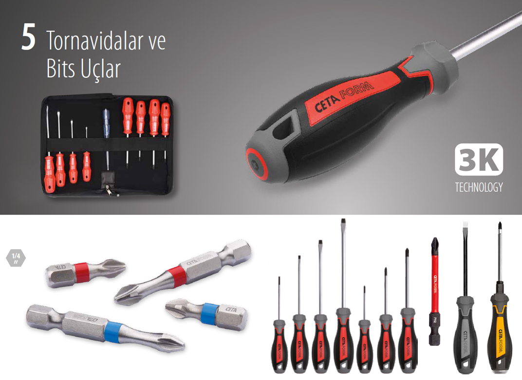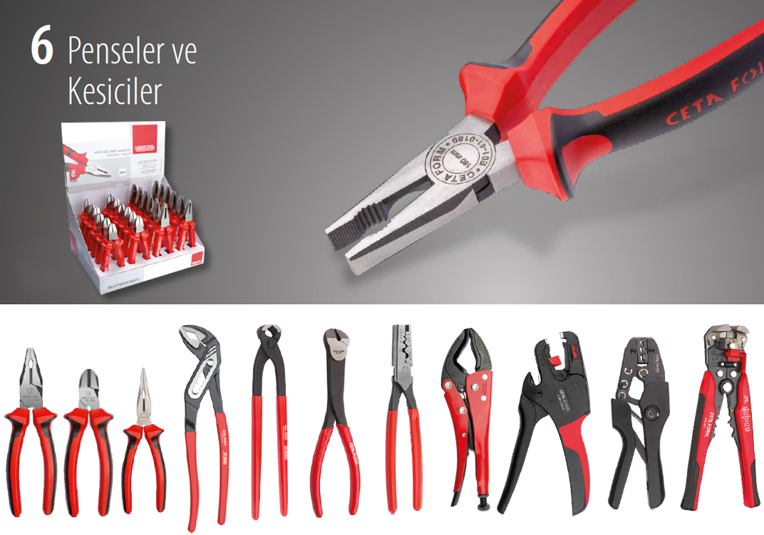 Türkiye’deki el aletleri üreticileri arasında en geniş ürün çeşidini Ceta Form sunar; ürün programımız 4.000’in üzerinde ürün kalemi içermektedir. Müşterilerimiz tek kaynaktan ihtiyaçlarını karşılar, operasyon maliyetlerini düşürürler.